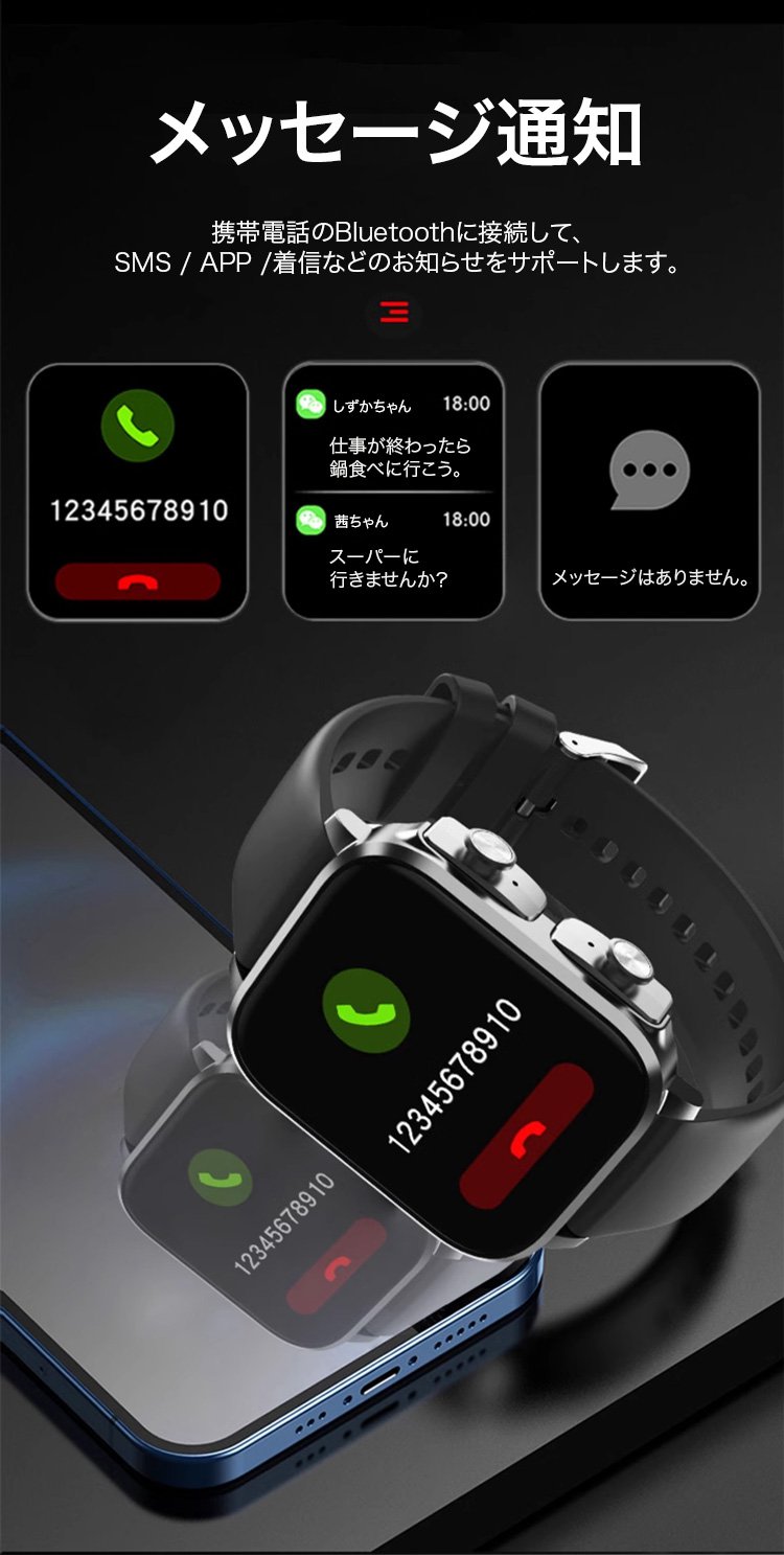ハンズフリー通話対応のイヤホン内蔵スマートウォッチ